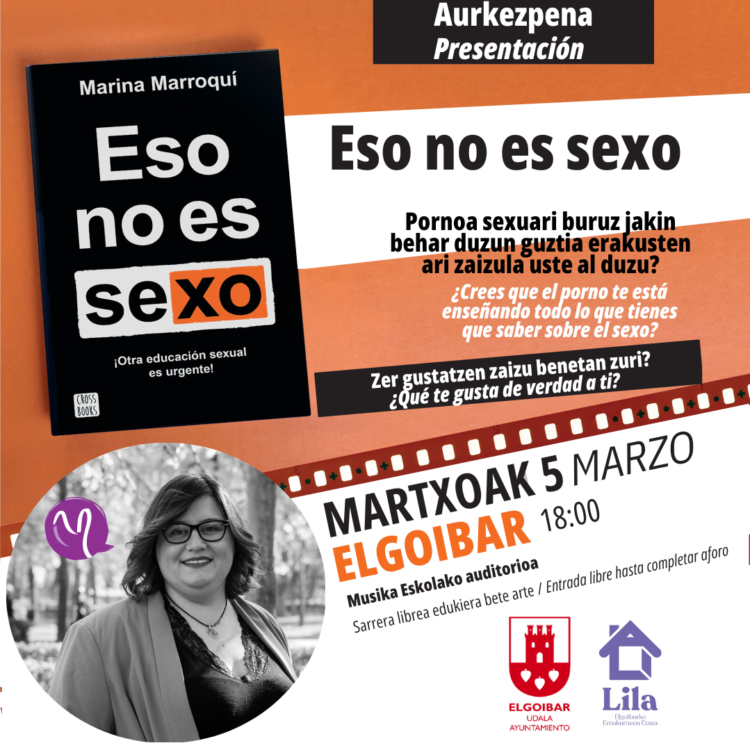 El Ayuntamiento de Elgoibar ha anunciado la presentación del libro «ESO NO ES SEXO. ¡Otra educación sexual es urgente!” de