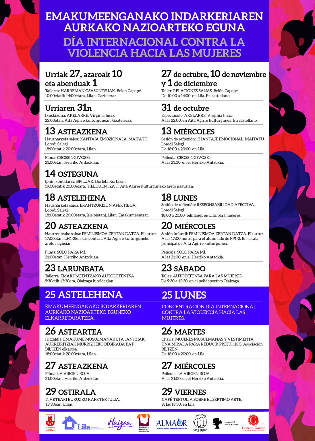 Las actividades, organizadas por diversas asociaciones locales como Lila, Haizea, Almaur, Ongarri Zine Kluba, Olaizaga Kirol Taldea y otras colaboradoras,